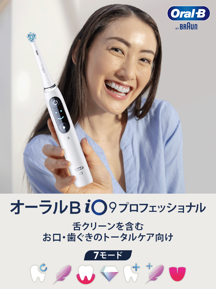 【iO9プロフェッショナル 舌クリーンを含む、お口・歯ぐきのトータルケア向け: 7モード】 歯、歯ぐきに加え、舌クリーン機能搭載。お口全体ケアができる7モード。