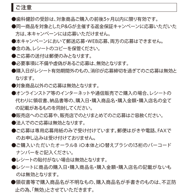 ※オーラルB by ブラウン公式ストアの対象商品はページ内の対象商品一覧または、応募用紙をご覧ください。