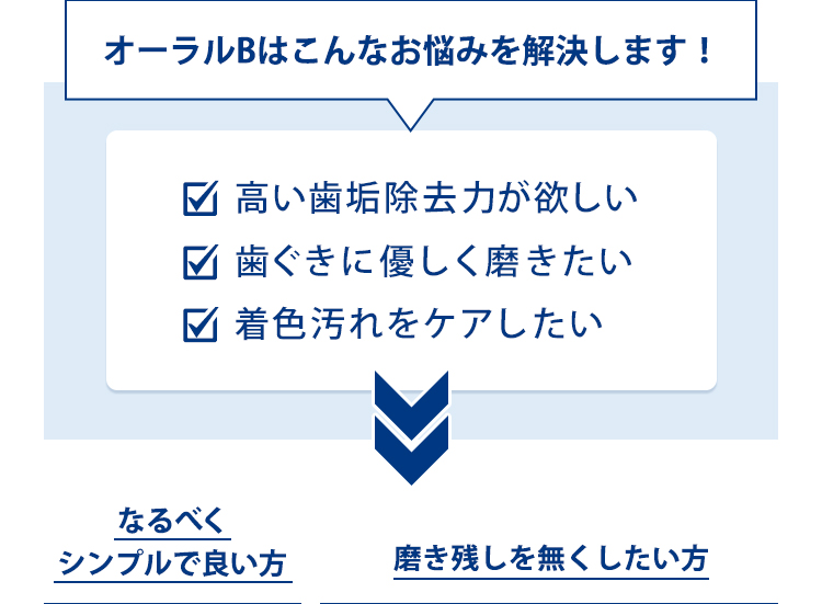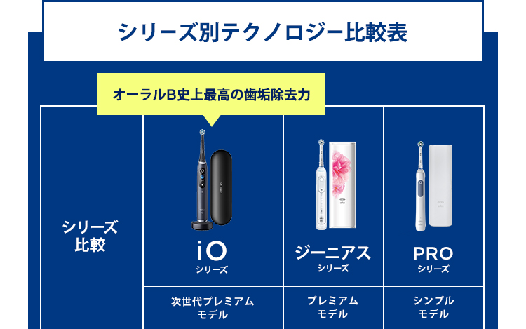 オーラルBの電動歯ブラシは、手磨きと比べて、歯垢除去力は99.7%UP*。