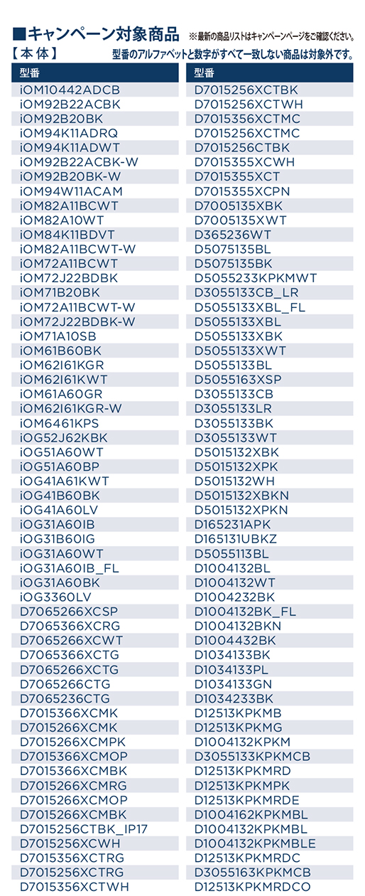キャンペーン対象商品一覧