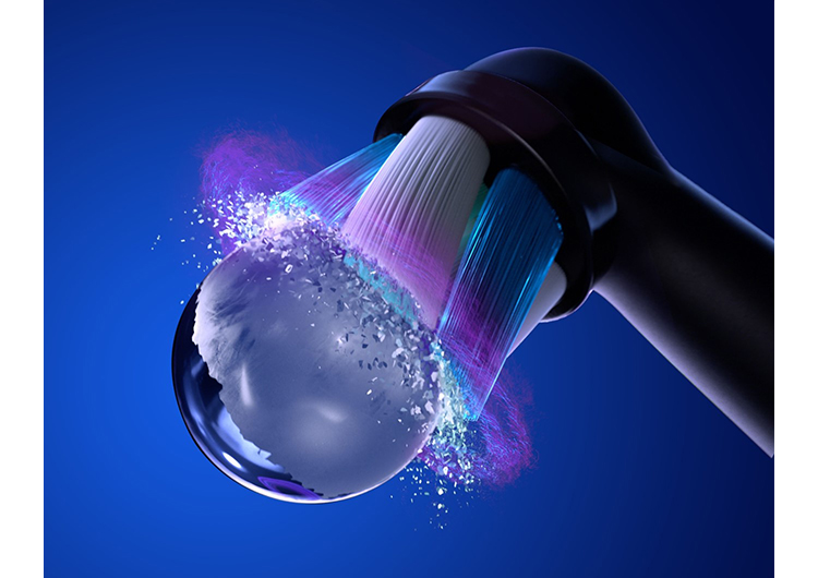 オーラルBの電動歯ブラシは、歯科クリーニングから発想を得て作られた丸型ブラシ。